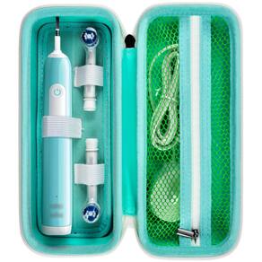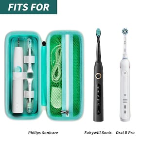 O estojo de armazenamento de escovas de dentes serve para as séries Philips Sonicare e escovas de dentes Bluetooth para crianças, como Philips Sonicare ProtectiveClean 4100/5100/6100/6500/7500, Philips Sonicare 2/3/HealthyWhite+/ FlexCare Platinum/DiamondClean 9300/9700/9500/9750 Series. Também serve para a Braun Oral-B Series, como a Braun Oral-B B 7500/9600/9300/3000 Smartseries/1000 CrossAction e Pro 500/1000/1500/5000/6000/Genius Pro 8000/1500 CrossAction/7000 Smart Series. É compatível com a escova de dentes elétrica Fairywill e a série AquaSonic. - Suporte de escova de dentes de viagem adequado para: capa de escova de dentes elétrica compatível com Orabl-B/ para escova de dentes elétrica recarregável Oral-B Pro 1000, 2000, 3000, 3500, 7500, 8000, 9600, 9300, 9300, para escova de dentes recarregável Philips Sonicare ProtectiveClean 4100/5100/6100/6500/7500/9300/9500 Power, para a série Philips Sonicare 2. Dimensão externa: 8,97 * 3,5 * 2,95 polegadas — Recipiente de escova de dentes de viagem Também para: Esta capa de armazenamento de escovas de dentes é perfeita para a escova de dentes Philips Sonicare 2/3/HealthyWhite/FlexCare Platinum/DiamondClean 9300/9700/9500/9750 e para a escova de dentes Bluetooth para crianças Oral-B Smartseries/CrossAction/Oral-B Kids e Genius Pro, para escova de dentes elétrica Fairywill, para escova de dentes elétrica ATMOKO e para a série AquaSonic. etc. - Capa de escova de dentes 100% segura, limpa e higiênica: esta capa porta-escovas de dentes elétrica de viagem é feita de material EVA rígido, que é à prova d'água, à prova de choque e à prova de poeira, protegendo sua escova de dentes Sonicare e os acessórios do kit de escovas de dentes contra arranhões, quebras e sujeira, sem cheiros peculiares. Design interno com couro PU que é fácil de limpar. - Design inteligente e razoável: design profissional de caixa porta-escovas de viagem, 3 ranhuras de elástico embutidas para diferentes modelos de tubo de pasta de dente e duas cabeças de escova de reposição, evita que elas tremam e caiam, com bolso de malha com zíper para cabeças de escova, suporte de carregador, pasta de dente e outros acessórios. Facilite a viagem com sua escova de dentes. - Design conveniente: este estojo de escova de dentes Sonicare vem com alça resistente para fácil transporte, design de zíper durável e suave, fácil de abrir e fechar, compacto e leve. Conveniente para viagens de negócios, viagens, férias e outras ocasiões. Você pode colocá-lo em sua bolsa, mochila e bagagem, estojo de armazenamento de viagem confiável e seguro para escovas de dentes.
