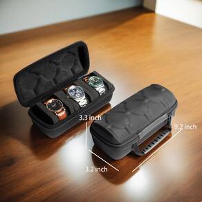 AUKURA Estojo rígido de viagem para relógio com 3 compartimentos, armazenamento e organizador para homens e mulheres, com travesseiro de relógio antimovimento (tecido preto com 3 compartimentos) - Estojo organizador rígido para armazenamento de relógios, comporta até 3 relógios grandes e pequenos; entendemos a importância de proteger seus valiosos relógios. Nossa caixa de armazenamento de relógio é feita para durar, com um exterior rígido, forrado com tecido de nylon durável. Isso garante resistência excepcional contra arranhões, impactos e outros danos potenciais, oferecendo proteção ideal para seus relógios. - Almofada de relógio de esponja personalizada que oferece proteção extra para relógios, mantenha o relógio bem no lugar; dentro da caixa do relógio, você encontrará as almofadas de relógio macias e ajustadas que acomodam relógios de vários tamanhos. O recurso compressível permite que o travesseiro se adapte à forma dos seus relógios, garantindo um ajuste confortável e seguro. Isso não apenas evita que os relógios se movam durante o transporte, mas também os mantém protegidos contra arranhões e outros danos potenciais. - Capa leve e compacta para uso doméstico ou viagens. Planejando um feriado? A capa de viagem para relógio AUKURA é a companhia de viagem perfeita para seus relógios. Seu design compacto e fino permite fácil embalagem e transporte sem complicações. Se você estiver viajando para um paraíso tropical ou explorando novas cidades, esta capa garante que seus relógios sejam armazenados com segurança durante suas viagens. - Com alça na lateral, conveniente para transportar; para maior comodidade, nossa caixa de relógio possui uma alça durável que permite um transporte confortável e fácil. A alça resistente garante uma aderência firme, facilitando o transporte de seus relógios aonde quer que você vá. Se você estiver viajando ou simplesmente organizando sua coleção de relógios em casa, a alça oferece a conveniência de que você precisa. - A capa de design elegante a torna uma ótima ideia de presente para amantes de relógios, marido, pai, namorado. Nossa caixa de transporte de relógio apresenta um design elegante e contemporâneo. O contorno fino adiciona um toque de elegância, tornando-o um companheiro ideal para qualquer ocasião. Se você estiver participando de uma reunião de negócios ou embarcando em um passeio casual, este suporte de relógio complementa seu estilo com sua estética refinada. - Zíper forte e suave: nossa caixa de relógio está equipada com um zíper forte e suave que garante acesso fácil e confiável aos seus relógios. O mecanismo de zíper de alta qualidade se move sem esforço, permitindo uma abertura e fechamento rápidos e convenientes da caixa do relógio. Você pode confiar que seus relógios serão armazenados com segurança dentro da capa. - Caixa de armazenamento de relógio: esta bolsa de transporte serve como uma solução de armazenamento versátil para sua coleção de relógios. Com seu tamanho compacto e vários compartimentos, oferece amplo espaço para acomodar vários relógios, mantendo-os organizados e protegidos. A caixa de armazenamento do relógio garante que seus relógios estejam sempre ao alcance e organizados perfeitamente. - Organizador de exibição de relógio: para os amantes de relógios que se orgulham de mostrar sua coleção, nossa caixa de transporte de relógio funciona como um organizador de exibição de relógio. O design elegante e as almofadas de relógio ajustadas à forma apresentam lindamente seus relógios, permitindo que você exiba seus relógios com orgulho. Seja em casa ou em um ambiente profissional, esta capa adiciona um toque de elegância à tela do seu relógio.