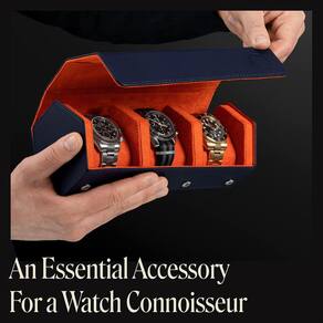 Rolos de relógio portáteis para viagens — Nossos estojos de viagem com rolo de relógio triplo têm o tamanho perfeito para facilitar o transporte. As almofadas em forma de “M” e o trilho deslizante garantem um estojo de transporte confortável e seguro para relógios.