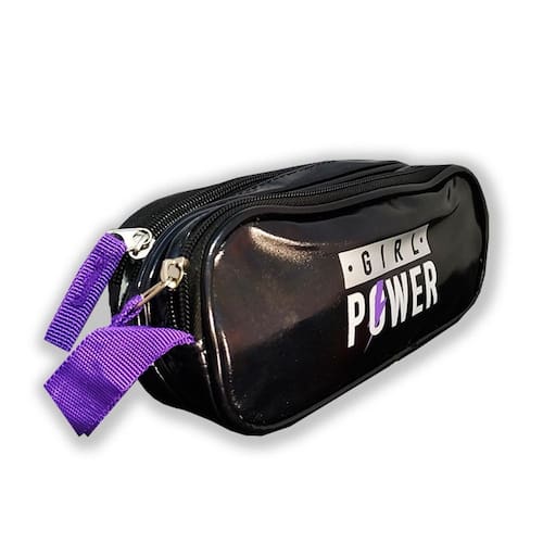 Já imaginou ganhar um lindo estojo das meninas girl power O estojo é lindo demais, sua frente é com detalhes brilhosos e na cor preta e com a super frase de ''girl power'', possui zíper personalizado de cor rosa. Perfeito para separar todo seu material, grande e espaçoso. Garanta já o seu