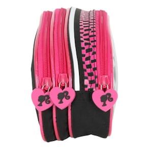 Estojo Duplo Escolar Infantil Barbie Estampa Fashion Cor: Preto Leve organização e estilo para a rotina escolar com o Estojo Duplo Infantil Barbie Estampa Fashion Com design inspirado no universo glamouroso da Barbie, ele oferece dois compartimentos espaçosos, ideais para acomodar lápis, canetas e acessórios. Fabricado com materiais de alta qualidade, une funcionalidade e sofisticação para encantar e facilitar o dia a dia das pequenas.