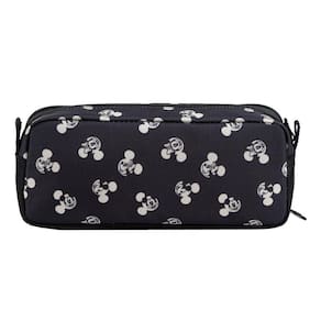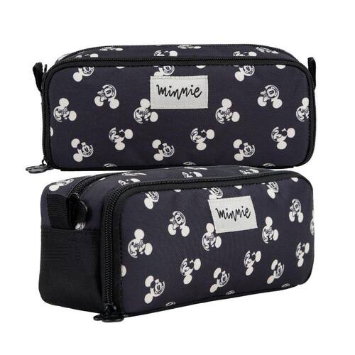 Confeccionado em poliéster resistente e estampado com detalhes exclusivos Minnie Mouse. O Estojo possui dois compartimentos, sendo um frontal com divisória e um principal amplo, ambos com fechamento em zíper com puxadores personalizados