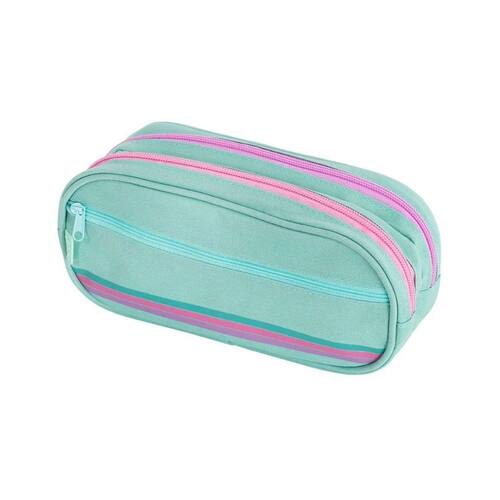 Mais espaço, mais cor e muuuita fofura Esse estojo estampado é a escolha perfeita para quem ama organização com estilo. Com duas divisórias com zíper, ele permite separar seus materiais com praticidade - e tudo isso em um mix de cores super delicado: turquesa, rosa e lilás