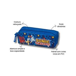 Estojo Duplo Sonic Escolar Necessaire Infantil Meninos Azul