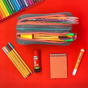 O fechamento em zíper e o puxador em metal proporcionam maior segurança e facilidade de uso. Você poderá levar seu estojo para a escola, viagens ou qualquer lugar que precisar, sem se preocupar com a perda ou danos aos seus materiais.
