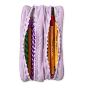 Este estojo possui dois compartimentos, o que facilita a organização dos seus materiais. Além disso, conta com fechamento em zíper, garantindo a segurança dos seus itens. O puxador em metal proporciona maior durabilidade e facilidade no manuseio.