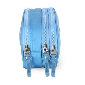 O modelo possui três compartimentos tornando-o ideal para estudantes que precisam carregar uma grande quantidade de material. Além disso, os puxadores personalizados adicionam um toque de charme e personalidade ao estojo.