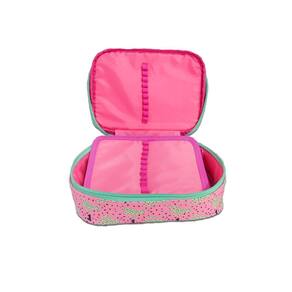 - características do produto: - confeccionado em material poliéster. - com divisória interna com elástico. - com amplo espaço interno. - com puxador de zíper personalizado. - com logo barbie personalizado em metal.