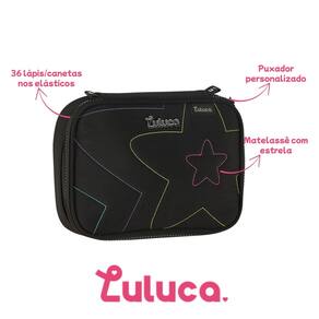 Estojo Escolar Box Luluca – Organização com muito estilo! O estojo perfeito para quem ama cor, brilho e praticidade! Com matelassê colorido em formato de estrela, o Estojo Box Luluca é espaçoso e super funcional. Possui 36 elásticos internos para manter lápis, canetas e outros itens bem organizados, com capacidade para aproximadamente 100 lápis. Ideal para a escola ou para levar em qualquer lugar com o toque divertido e cheio de personalidade da Luluca! Perfeito para deixar o material escolar tão criativo quanto você!