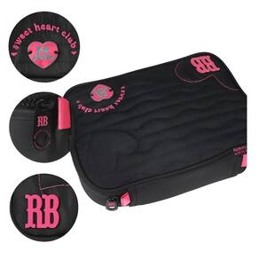 Estilo que bate mais forte: o design é o grande destaque com um acabamento em matelassê em formato de ondas imitando batidas do coração e um patch exclusivo sweet heart club bordado, este estojo mostra sua personalidade e atitude. Os puxadores de zíper coloridos dão o toque final de charme.