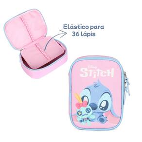 Características Estojo: - Puxadores Personalizados Emborrachados - Elasticos para 36 lápis - Stitch sublimado - Capacidade para 100 lápis/canetas