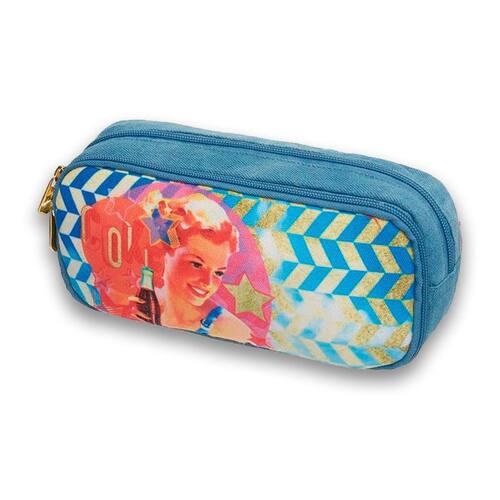 01 estojo estojo escolar duplo beauties retro coca cola jeans. Acompanha um super conjunto de 12 lápis de cor variados de brinnnddd