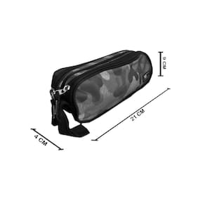- estampa camuflada. - estojo duplo compartimento. - fechamento em zíper. - material em poliéster/crinkle.