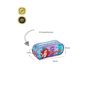 Estojo sereia Fundo do Mar 02 compartimentos Dimensões: 15 x 21 x6 cm CUIDADOS: - Guarde em um local seco e arejado evitando locais úmidos. - Evite colocar excesso de peso no produto para não forçar os zíperes e costuras. - Proteja os objetos cortantes e/ou pontiagudos evitando o contato direto com o produto. - Evitar altas temperaturas. - Cores claras poderão manchar quando em contato com outros objetos ou roupas de cores pigmentadas.