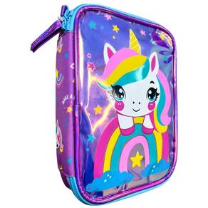 Estojo Box Teen Rabisk Unicornio Holográfico Material Durável: Confeccionado em Poliéster 300, este estojo oferece resistência e durabilidade, ideal para o uso diário. Design Único: Estampa exclusiva de Unicornio Holográfico com frontal em PVC que dá um toque holográfico diferenciado, destacando a originalidade e o estilo da marca Rabisk. Armazenamento Organizado: Equipado com uma aba interna que possui elásticos para organizar lápis e canetas de forma prática e segura, facilitando o acesso a todos os seus itens. Compartimento com Zíper Embutido: Mantenha objetos menores protegidos e evite a bagunça no seu estojo.