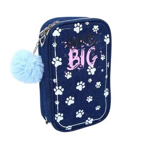 Com um design moderno e autêntico, este estojo possui estampa vibrante "Dream Big" em um fundo azul que remete ao jeans, conferindo um toque descolado e resistente. O charme extra fica por conta do adorável chaveiro de pompom azul, que adiciona um toque divertido e único ao seu material escolar.