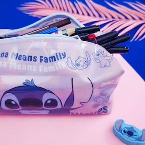 Prepare o regresso às aulas com muito estilo e encanto com o nosso Estojo Escolar Necessaire Grande do STITCH! Ideal para todas as idades, este estojo combina praticidade e fofura. Com bastante espaço para guardar canetas, lápis, borrachas, marcadores e muito mais, é o acessório perfeito para manter tudo organizado!