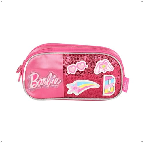 Estojo Escolar Infantil com 3 Divisórias e Estampa Barbie