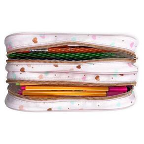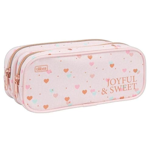 Estojo Escolar Infantil Duplo Académie Coração Metalizado Rosa - Tilibra