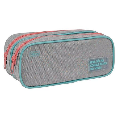 Estojo Escolar Infantil Duplo Académie Dots Cinza - Tilibra