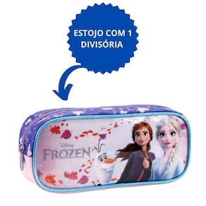 Estojo escolar infantil Frozen Journey - Estojo , produzido em cetim estampado e vivos metalizados . Painel frontal em Cetim 3D , compartimento duplo para melhor organização dos objetos e fechamento em zíper com puxadores personalizados.