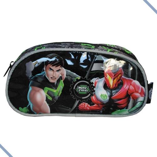 - Estojo com bastante espaço interno para colocar lápis, canetas, apontadores, borracha, etc. - Produto com selo do INMETRO. - Recomendado para crianças a partir de 3 anos de idade. - Fabricante : Luxcel. - Estampa com o personagem do desenho, MAX STEEL.