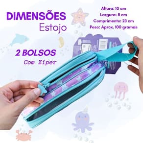 - 01 Estojo Escolar Infantil Sereia Encanto dos Mares