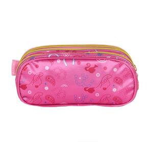 Estojo é super espaçoso e cabe todos os seus materiais de escrita. Ele é composto e os materiais vão soltos dentro do compartimento.