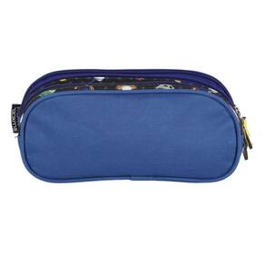 Estojo é super espaçoso e cabe todos os seus materiais de escrita. Ele é composto por os materiais vão soltos dentro do compartimento.