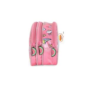 Estojo é super espaçoso e cabe todos os seus materiais de escrita. Ele é composto por os materiais vão soltos dentro do compartimento.