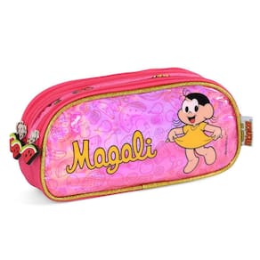 Estojo é super espaçoso e cabe todos os seus materiais de escrita. Ele é composto por os materiais vão soltos dentro do compartimento.