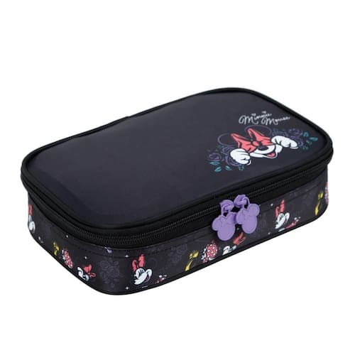 Estojo Escolar Minnie Disney Bolsa Box Com 36 Elástico Preto Nada menos que muito charme, beleza, qualidade e muuuito bom gosto, não é mesmo Com design exclusivo, prático e confortável o estojo Minnie Mouse é ideal para quem tem muito lápis, canetinha, caneta e outros materiais e acessórios.
