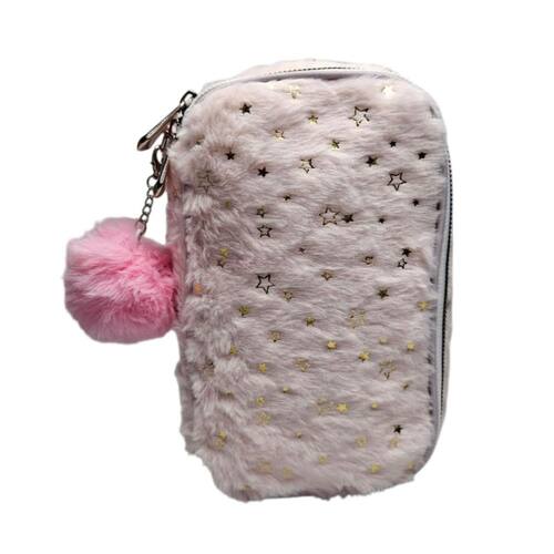 Estojo Pelúcia Rosa Pastel com Estrelas: Um Toque de Doçura e Organização!