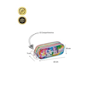 Confeccionado em Poliéster Fechamento em zíper 2 compartimentos espaçosos Design exclusivo Medidas aproximadas: Altura: 10 cm Largura: 7 cm Comprimento: 22 cm CUIDADOS: - Guarde em um local seco e arejado evitando locais úmidos. - Evite colocar excesso de peso no produto para não forçar os zíperes e costuras. - Proteja os objetos cortantes e/ou pontiagudos evitando o contato direto com o produto. - Evitar altas temperaturas. - Cores claras poderão manchar quando em contato com outros objetos ou roupas de cores pigmentadas.