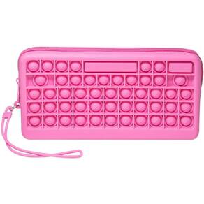 Estojo Escolar Pop It Antiestrees Poosh Teclado Em Silicone Dac Roxo e Rosa.
