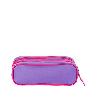 Estojo é super espaçoso e cabe todos os seus materiais de escrita. Ele é composto e os materiais vão soltos dentro do compartimento.