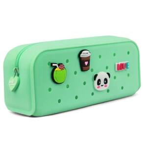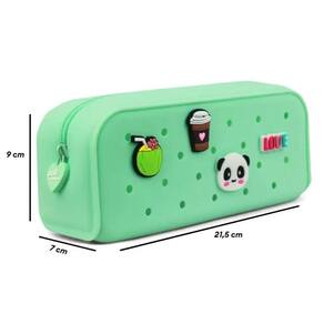 Estojo Escolar Silicone Com 4 Pingentes Charm Polibras Verde