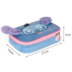 Estojo Escolar Stitch Box Disney Pelucia 3D Azul Luxcel