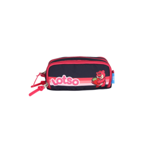 Marca: Luxcel (Licenciada Oficialmente Disney/Toy Story) Personagem/Tema: Lotso (Urso Lotso). Modelo: Estojo Triplo (3 Compartimentos / 3 Zíperes). Design: Estampa do Lotso, morangos e o nome "Lotso" em destaque. Cor: Predominantemente Azul Escuro (Marinho) e Pink (Rosa Escuro). Fechamento: Três zíperes independentes com puxadores personalizados em Pink. Capacidade: Ótimo espaço para organizar grande volume de material em três seções separadas.