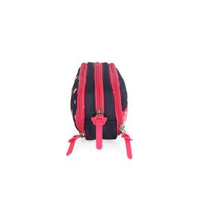 Organização Nível Máximo! Estojo Triplo do Lotso Azul Escuro: 3 Compartimentos para o Seu Material! Para os fãs do ursinho Lotso que buscam um estojo mais discreto, mas com organização de sobra, este modelo oficial da Disney é perfeito! Fabricado pela Luxcel, ele combina o fundo em Azul Escuro (Marinho) com os detalhes vibrantes em Pink e a estampa fofa do Lotso com seus morangos. O grande diferencial é a Divisão Tripla, com três zíperes independentes, que permite separar totalmente lápis de cor, canetas e acessórios. Ideal para quem precisa de muito espaço, durabilidade e ama o charme doce de Toy Story!