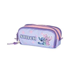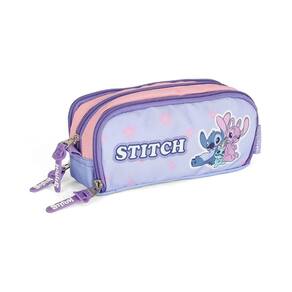 Estojo Escolar Triplo Luxcel Stitch Flores Roxo - Único-Purple
