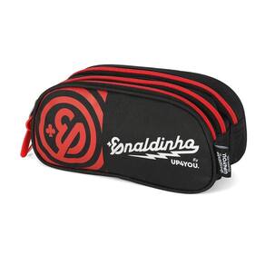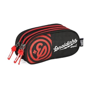 Estojo é super espaçoso e cabe todos os seus materiais de escrita. Ele é composto por os materiais vão soltos dentro do compartimento.