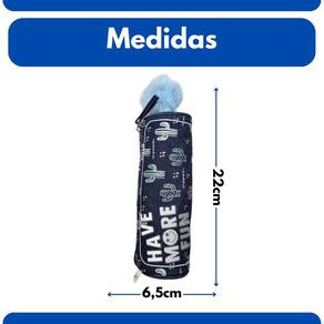Design Cheio de Personalidade e Diversão: Estilo "Jeans" Casual: Fabricado em um tecido azul escuro de alta qualidade que imita jeans, oferecendo um visual moderno, resistente e super descolado. Mensagem Inspiradora "HAVE MORE FUN": Destaque-se com a frase motivacional "HAVE MORE FUN" (Divirta-se Mais) em letras brancas grandes e em relevo. A palavra "MORE" é artisticamente estilizada com um rosto sorridente e estrelas nos olhos, garantindo um toque de alegria contagiante. Estampa de Cactos Divertida: O fundo azul é adornado com um padrão repetido de cactos brancos estilizados de vários tamanhos e formatos, pontinhos e linhas onduladas, criando uma atmosfera lúdica e levemente "Western". Pompom Fofo e Vibrante: Um pompom macio e fofo na cor azul claro está preso ao zíper, complementando a paleta de cores e adicionando um charme extra. Formato Cilíndrico: Design alongado e prático, perfeito para acomodar diversos materiais com facilidade. Organização com Muita Praticidade: Espaço Generoso: Ideal para guardar e organizar lápis, canetas, borrachas, apontadores, marcadores, pequenos materiais de escritório, maquiagens ou outros acessórios que você precisa ter sempre à mão. Fechamento Seguro: Equipado com um zíper resistente na parte superior, que mantém seus pertences protegidos e bem organizados, evitando perdas. Leve e Portátil: Com apenas 33 gramas e dimensões otimizadas, é fácil de transportar na mochila, bolsa ou até mesmo como um acessório de mão. Versatilidade para o Dia a Dia: Não é apenas um estojo escolar! Use-o como necessaire para maquiagem, porta-objetos para a bolsa, ou para organizar pequenos itens pessoais. É o acessório perfeito para quem adora itens com personalidade e uma mensagem positiva.