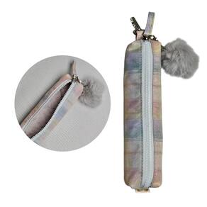 Estojo Multiuso Design Xadrez Pastel com Pompom Fofo Removível - Leve e Compacto