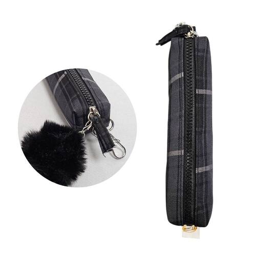 Estojo Multiuso Design Xadrez Pastel com Pompom Fofo Removível - Leve e Compacto