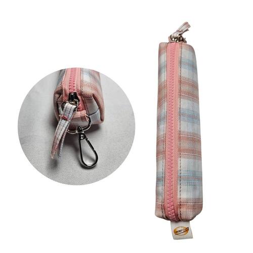Estojo Multiuso Design Xadrez Pastel com Pompom Fofo Removível - Leve e Compacto
