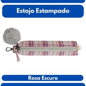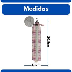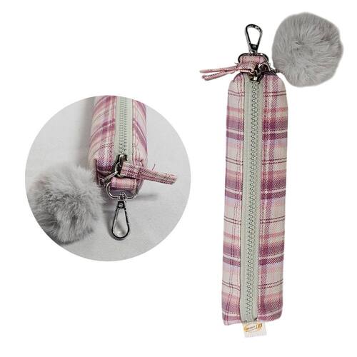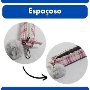 Estojo Escolar Xadrez Rosa Fofo com Pompom Multiuso Organização Colorido Zíper Caneta Material
