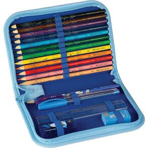 12 ecolápis de cor 2 canetas esferográficas 1 ecolápis grafite 1 régua de 15 centímetros 1 apontador com depósito 1 borracha Marca: Não Informado