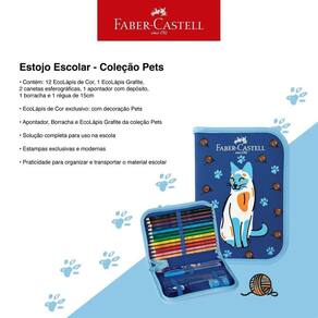 Estojo Escolare Pets Gato Faber Castelln Características do Produto A Faber Castell criou o estojo necessário para o seu dia a dia, com todos os materiais necessários para desenvolver sua criatividade, além de ser mega fofo.