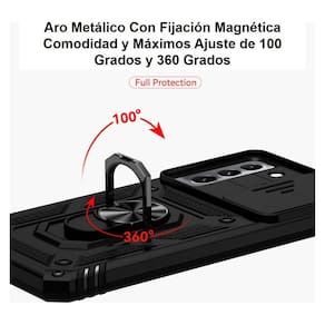 Carcaça reforçada com aro e fixação magnética compatível com Samsung Galaxy S22Esta carcaça incorpora Proteções extras em esquinas de nível máximo contra impactos, golpes e caídas, com ajuste perfeito ao seu telefone, el diseño no escatima agregados de seguridad para manter seu dispositivo sempre resguardado, es antiresbalante, agradable al tacto.El uso del aro para agarre de la carcasa asegura que bajo ninguna circunstancia, seu telefone se caerá de sus mãos, el aro puede moverse hasta 100 grados horizontal y 360 grados sobre su vertical, puede usarse como suporte traseiro para poder ver um filme ou vídeo em uma tela grande e apenas dejar o telefone sobre uma superfície plana.